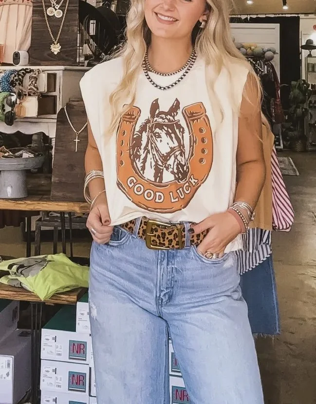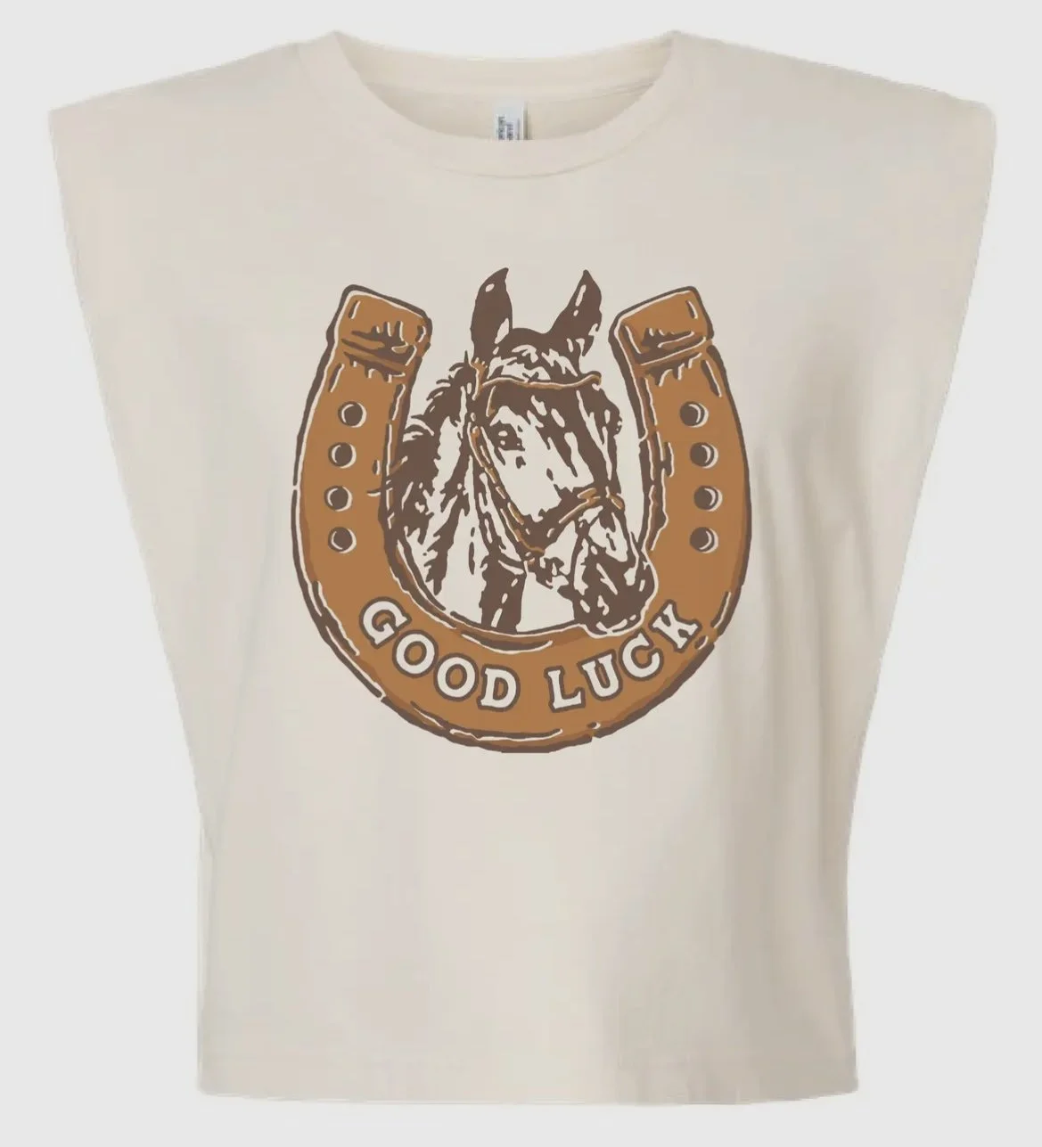 Shop › Good luck tee Image 1 of 2 Image 2 of 2 Good luck tee $42.00 White muscle teeBoxy fit Size: Small Medium Large Xlarge 2XL Quantity: Add To Cart Added! White muscle teeBoxy fit