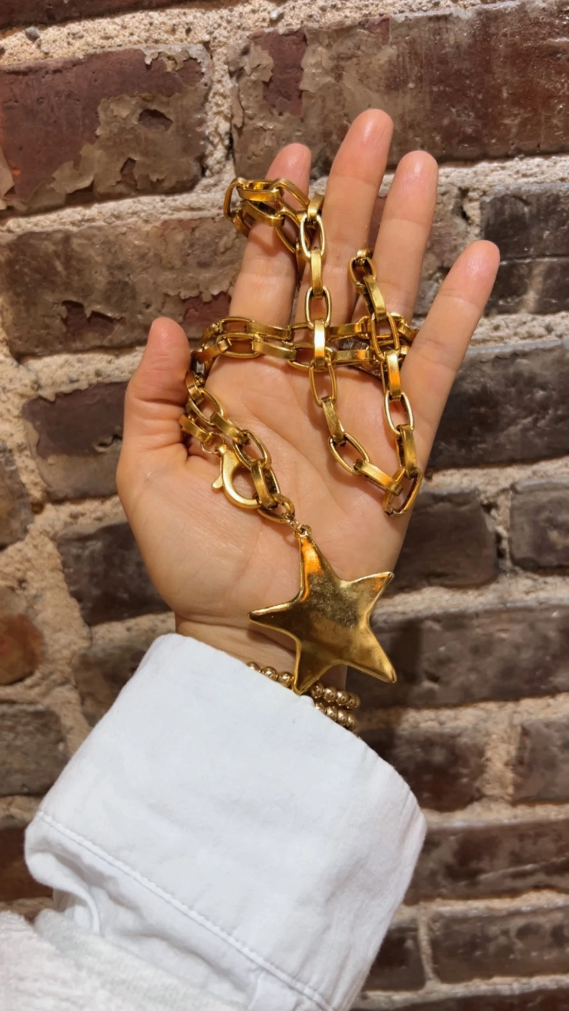 Shop › Star necklace Image 1 of 7 Image 2 of 7 Image 3 of 7 Image 4 of 7 Image 5 of 7 Image 6 of 7 Image 7 of 7 Star necklace $88.00 This is a made to order itemStar necklace 40.6” length chainCan be wrapped twice or made into a Y shape around neck Quantity: Add To Cart Added! This is a made to order itemStar necklace 40.6” length chainCan be wrapped twice or made into a Y shape around neck