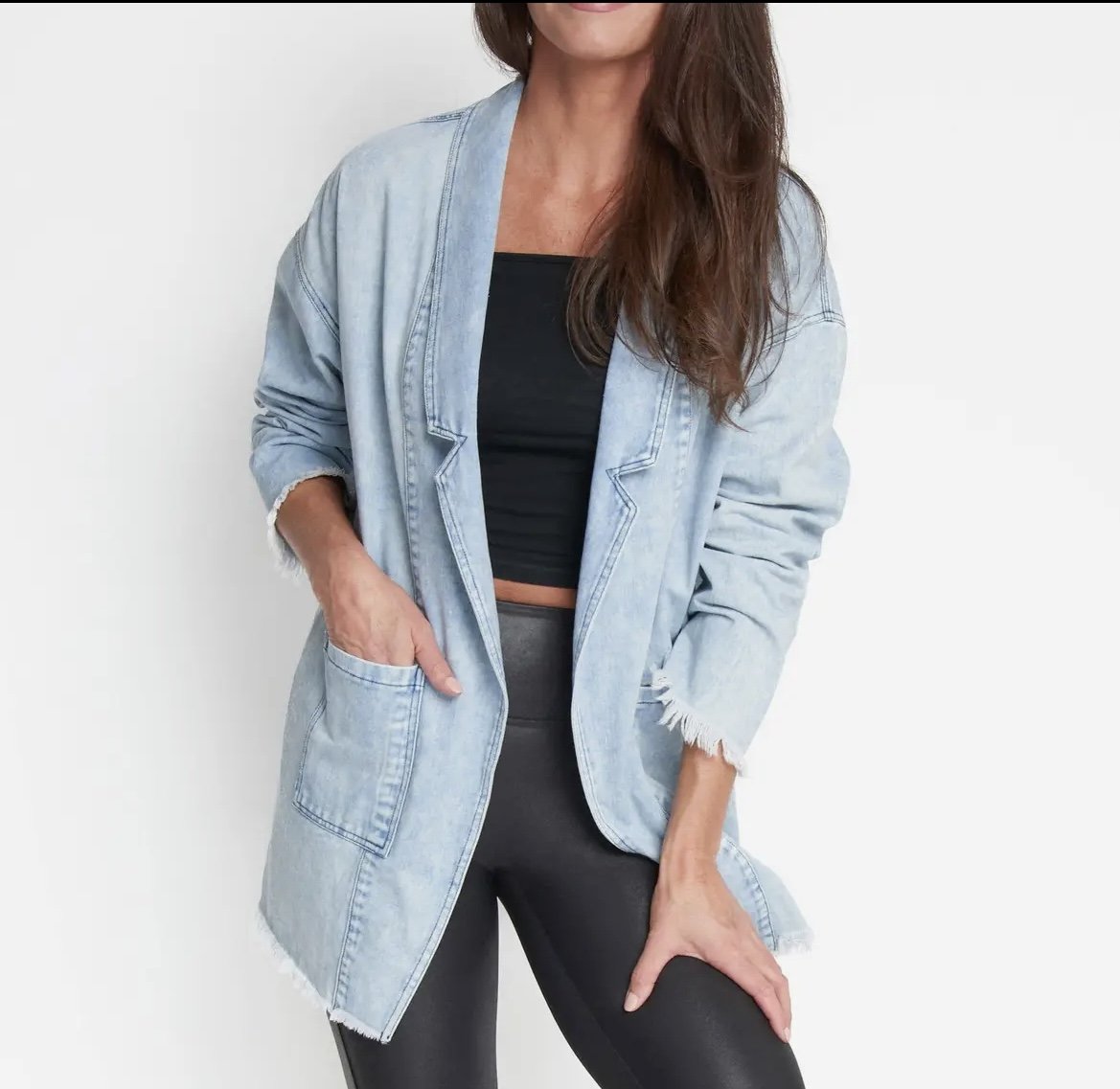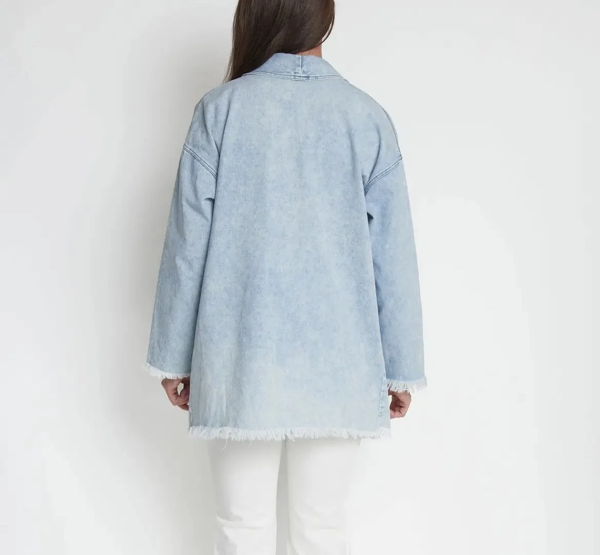 Shop › Denim blazer Image 1 of 4 Image 2 of 4 Image 3 of 4 Image 4 of 4 Denim blazer $68.00 Raw hemDenim materialOversized fit Size: S/M L/XL Add To Cart Added! Raw hemDenim materialOversized fit